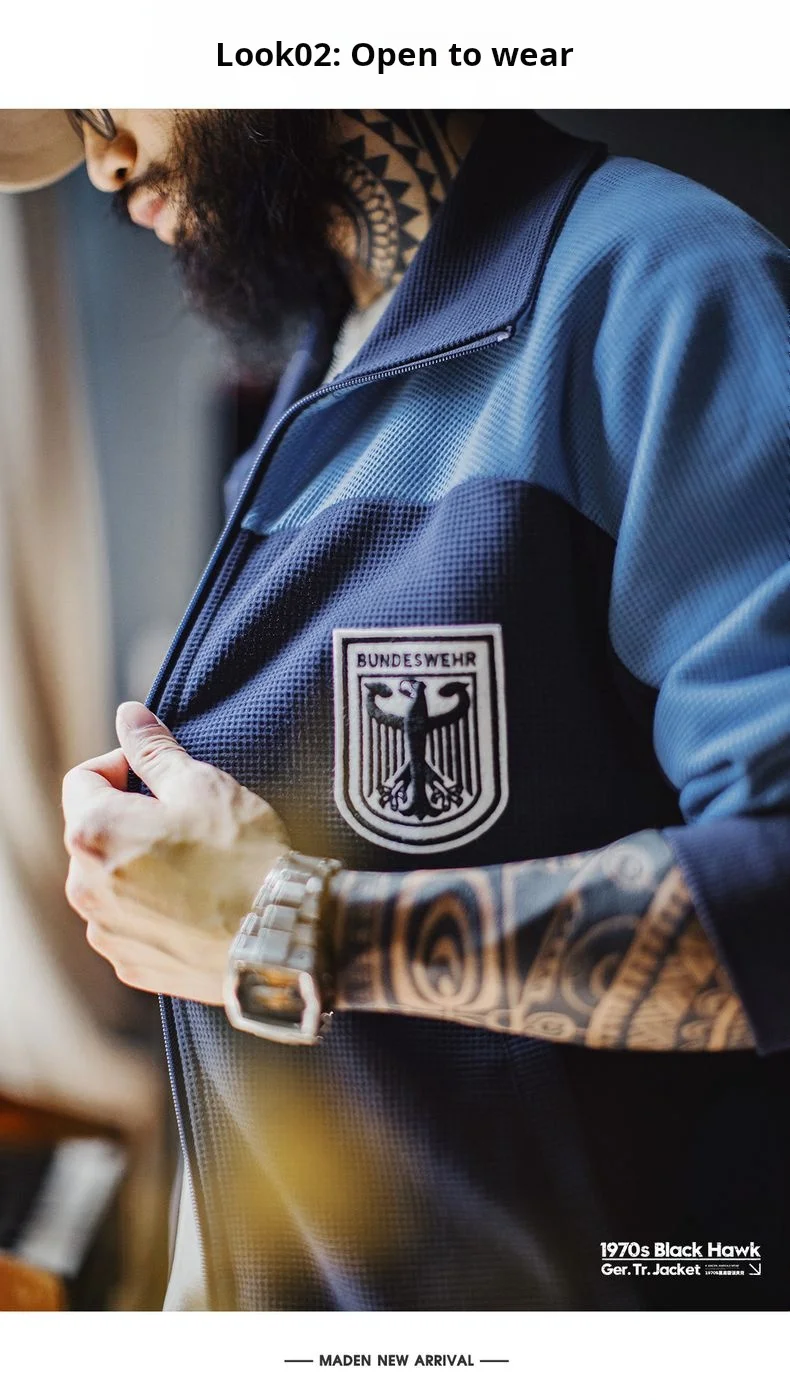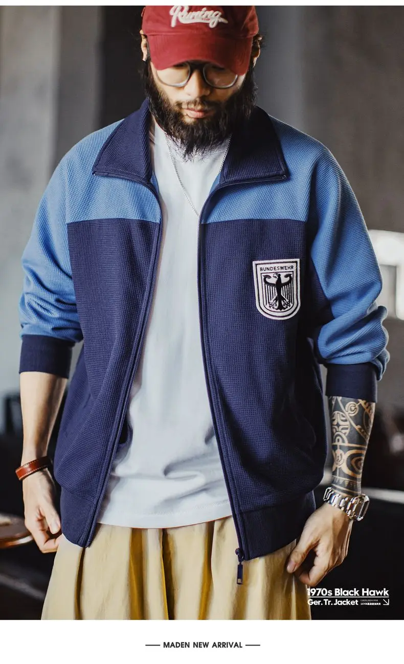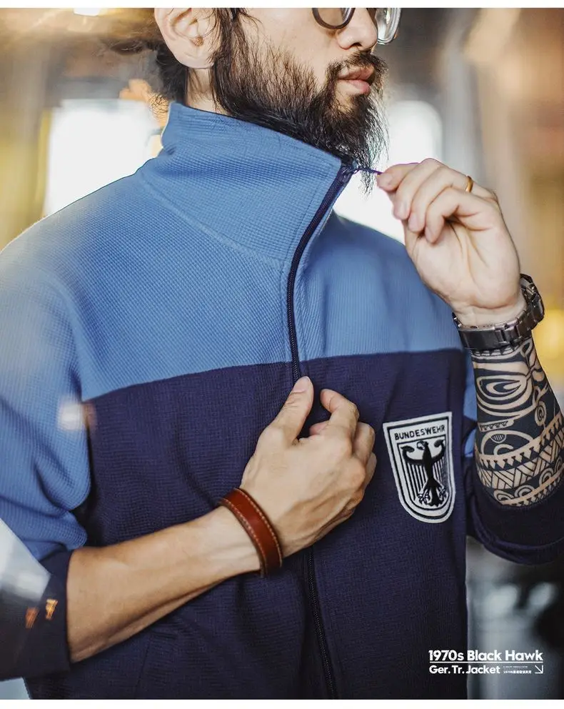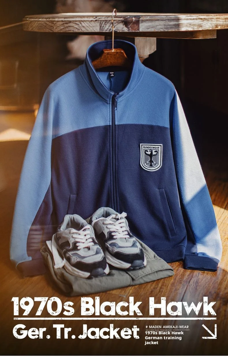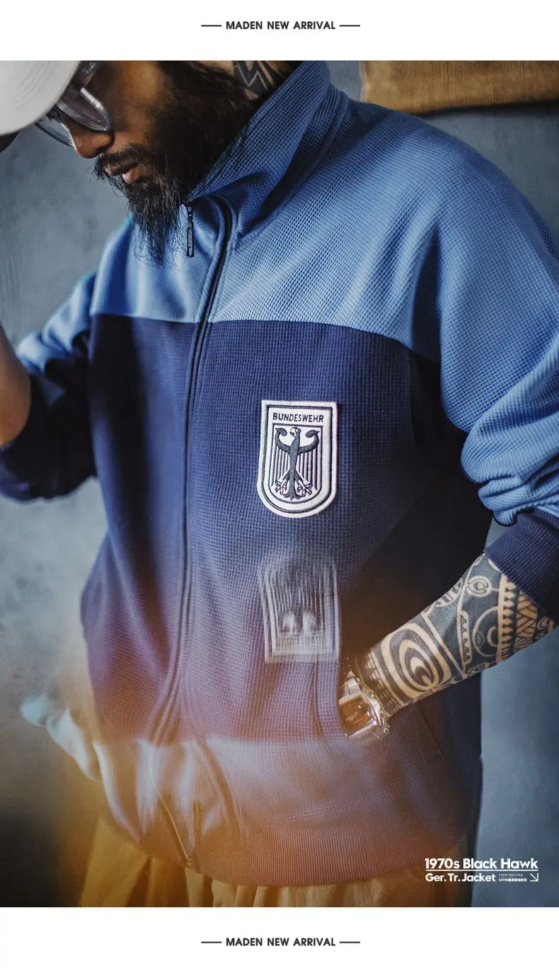 AMEKAJI 1970's Black Hawk Waffle Knit Training Jacket & Sweatpants