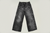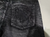 Black distressed jeans with a spider designBlack wide-leg jeans on a light gray backgroundClose-up of a dark denim pocket on a jacket with a plain background