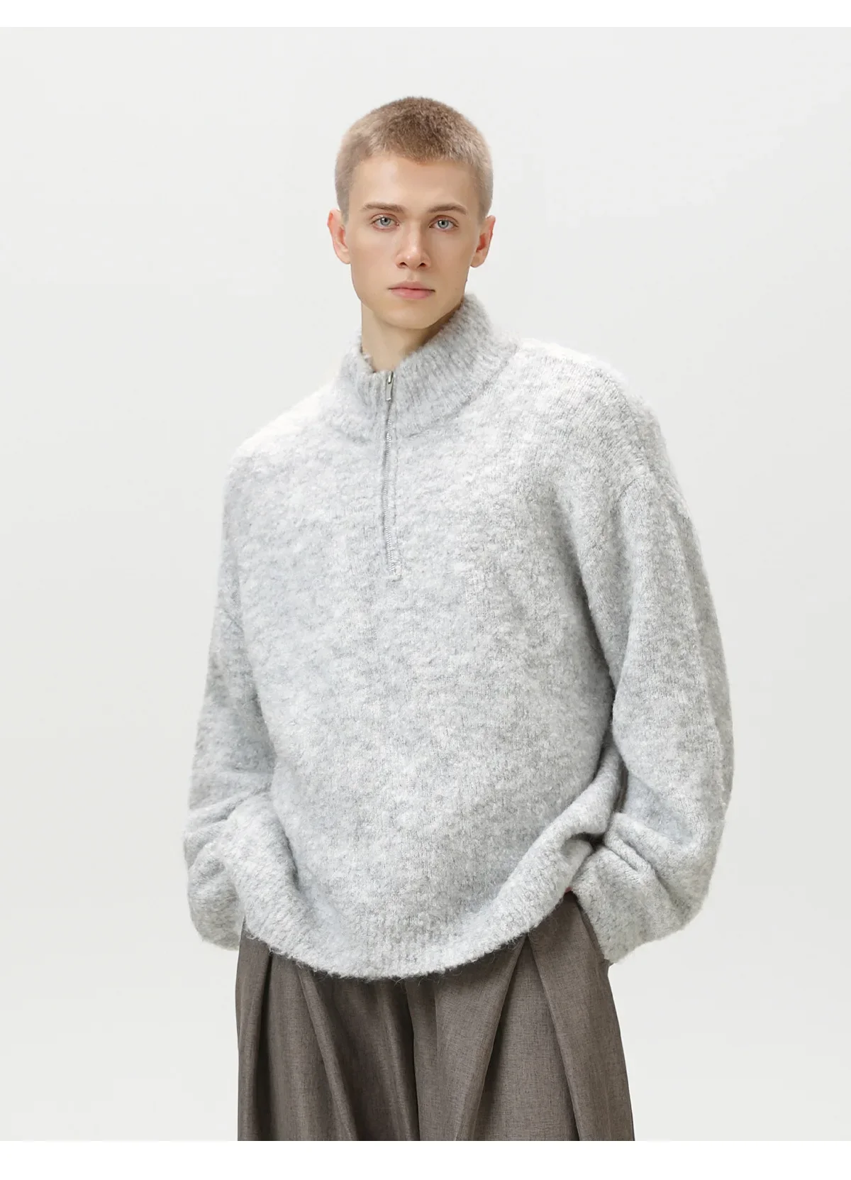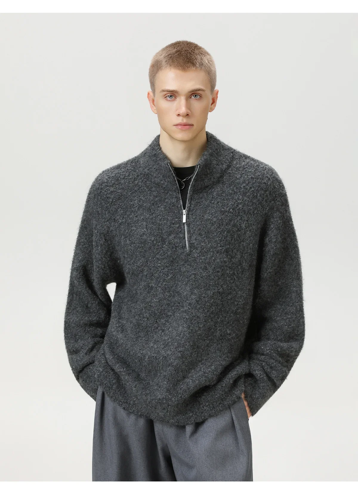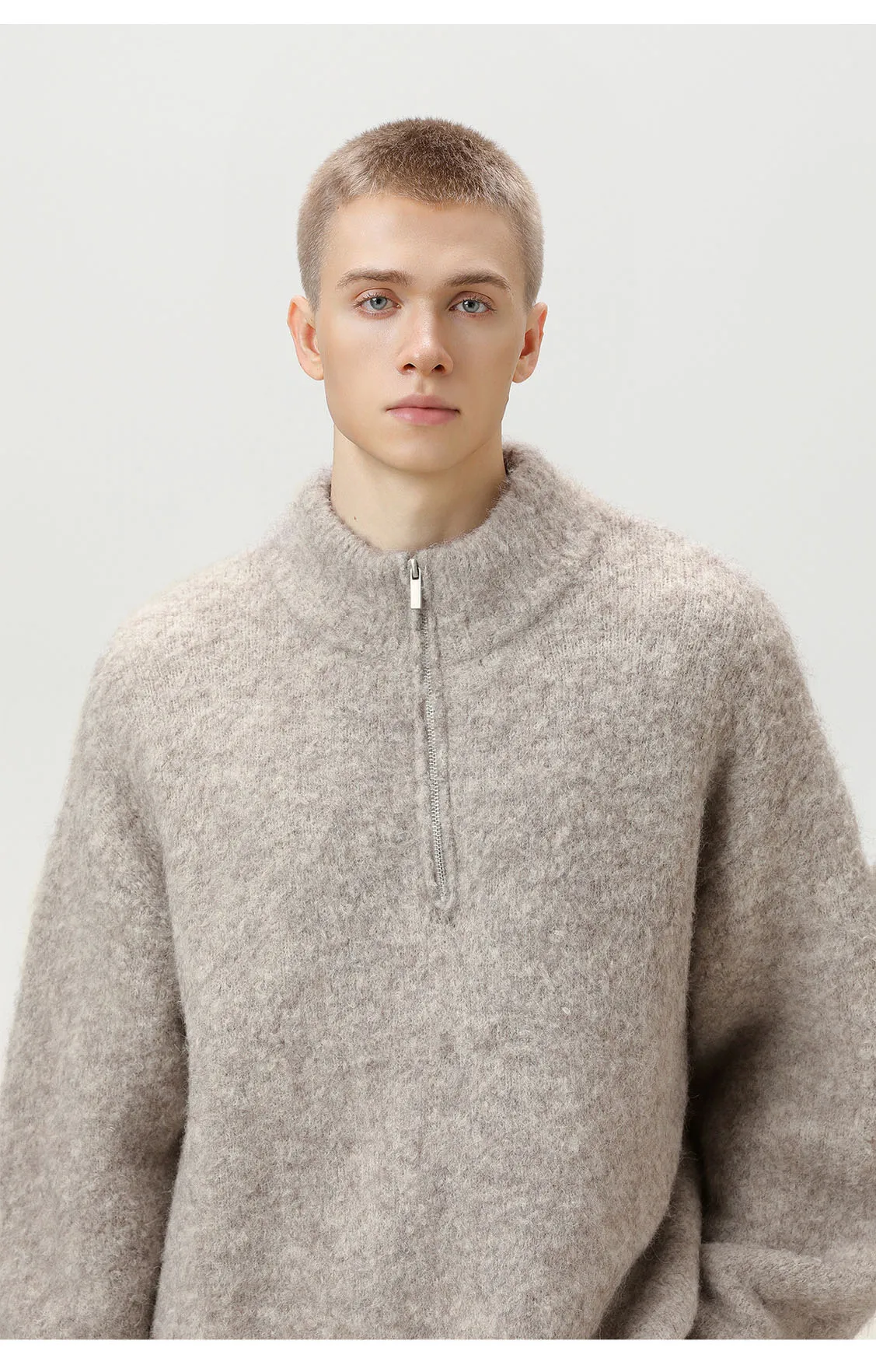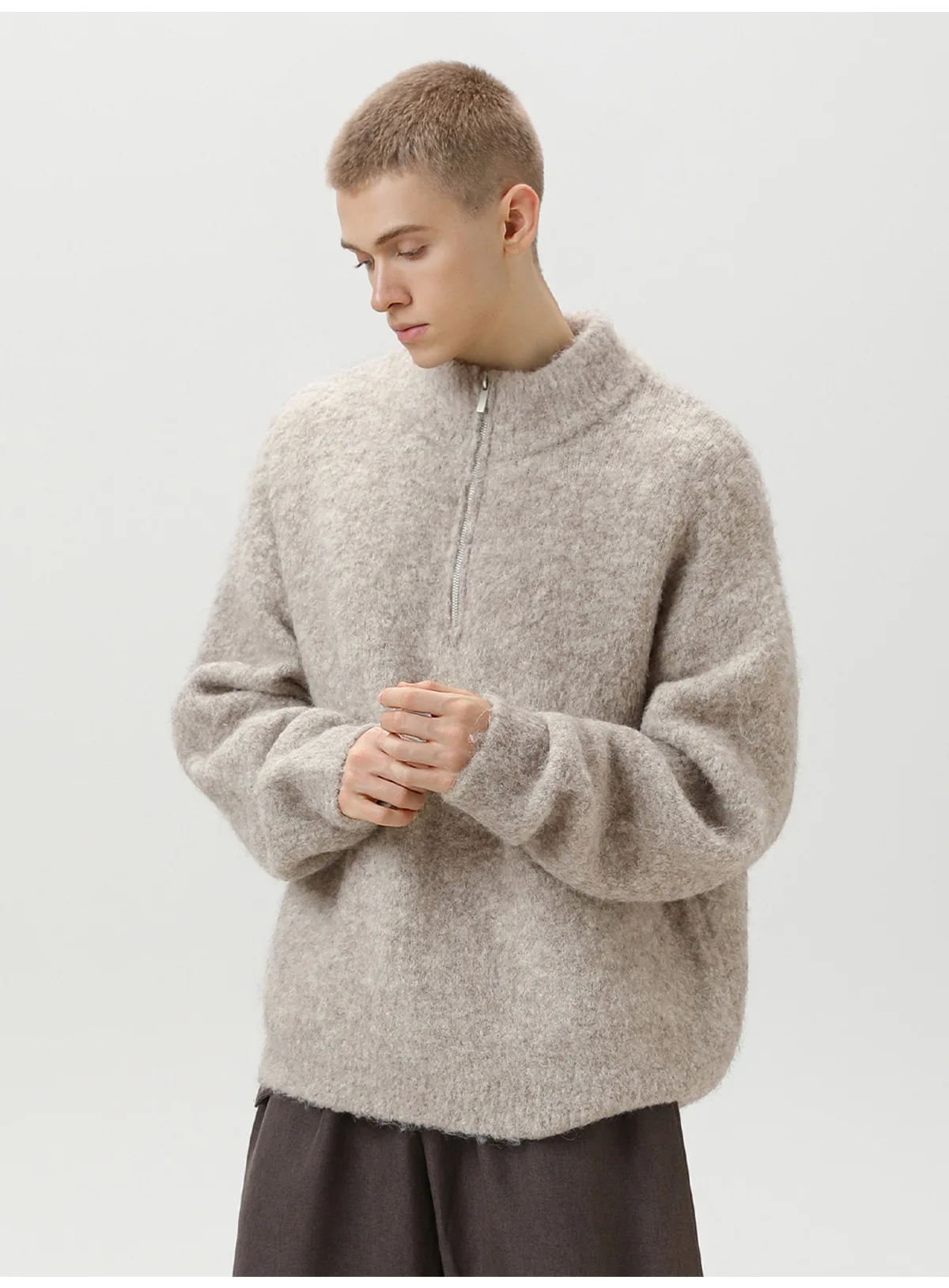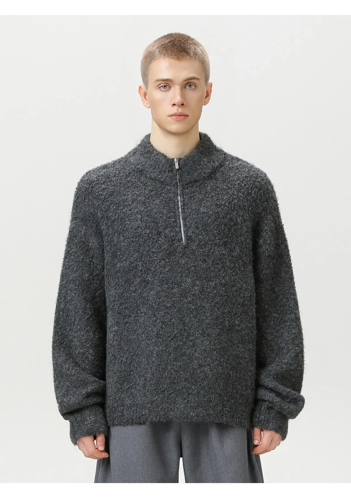 TFETTER Coil Yarn Knit Half-Zip Pullover