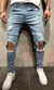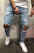 Vaqueros ajustados rasgados con cintura media a la moda para hombre