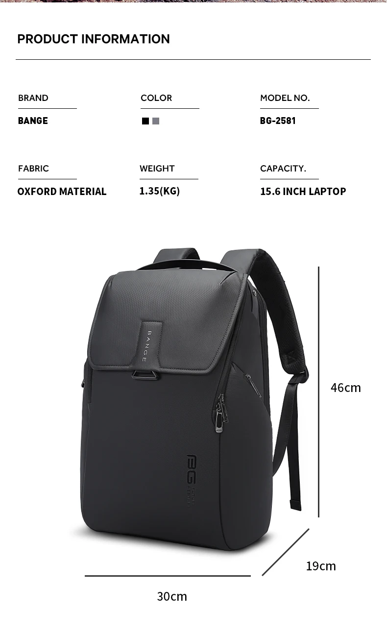 • Features: Large Cpacity, Waterproof, Water Redpellent, Anti-Theft, USB Charging