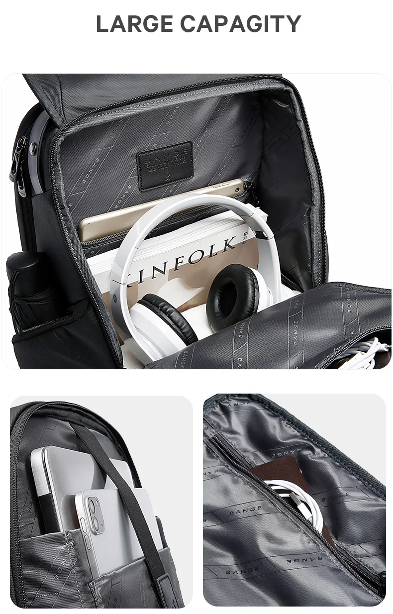 BANGE Luxury Multifunctional Waterproof Backpack 15.6"