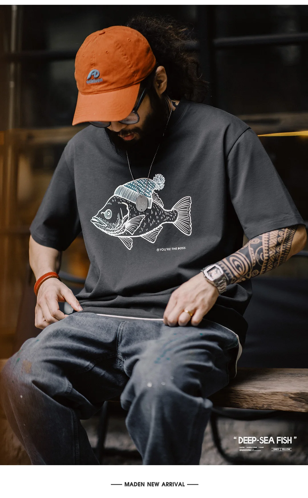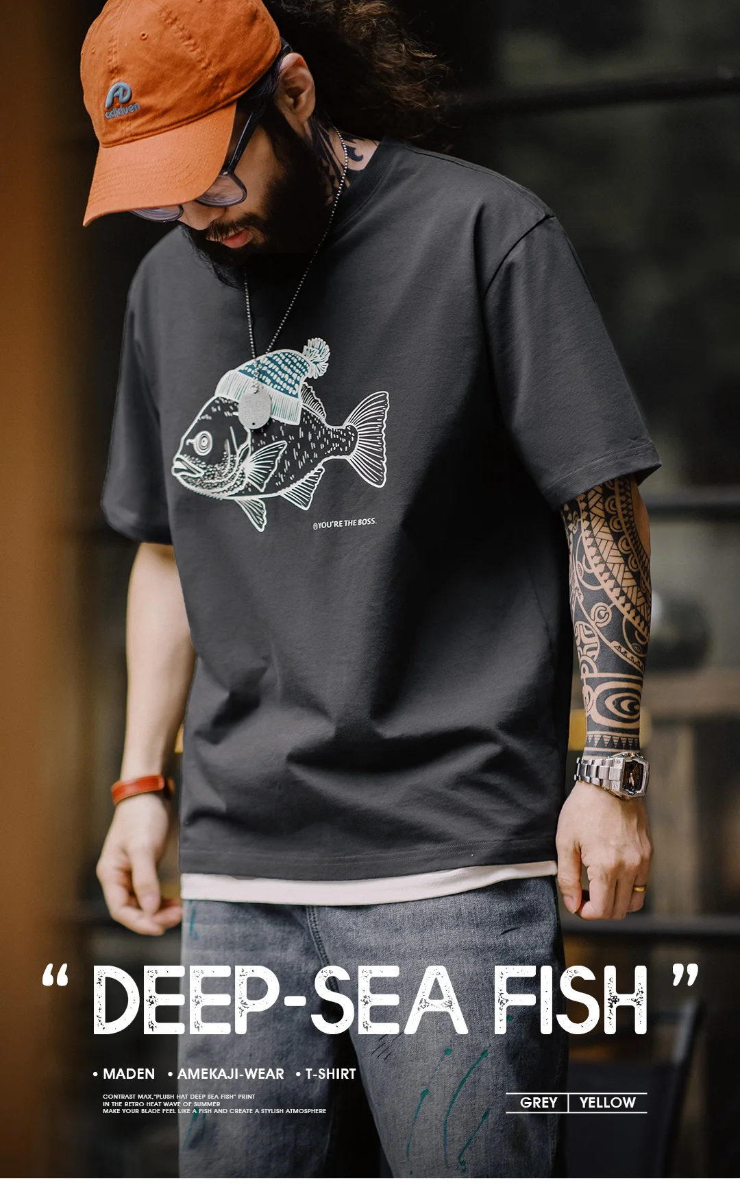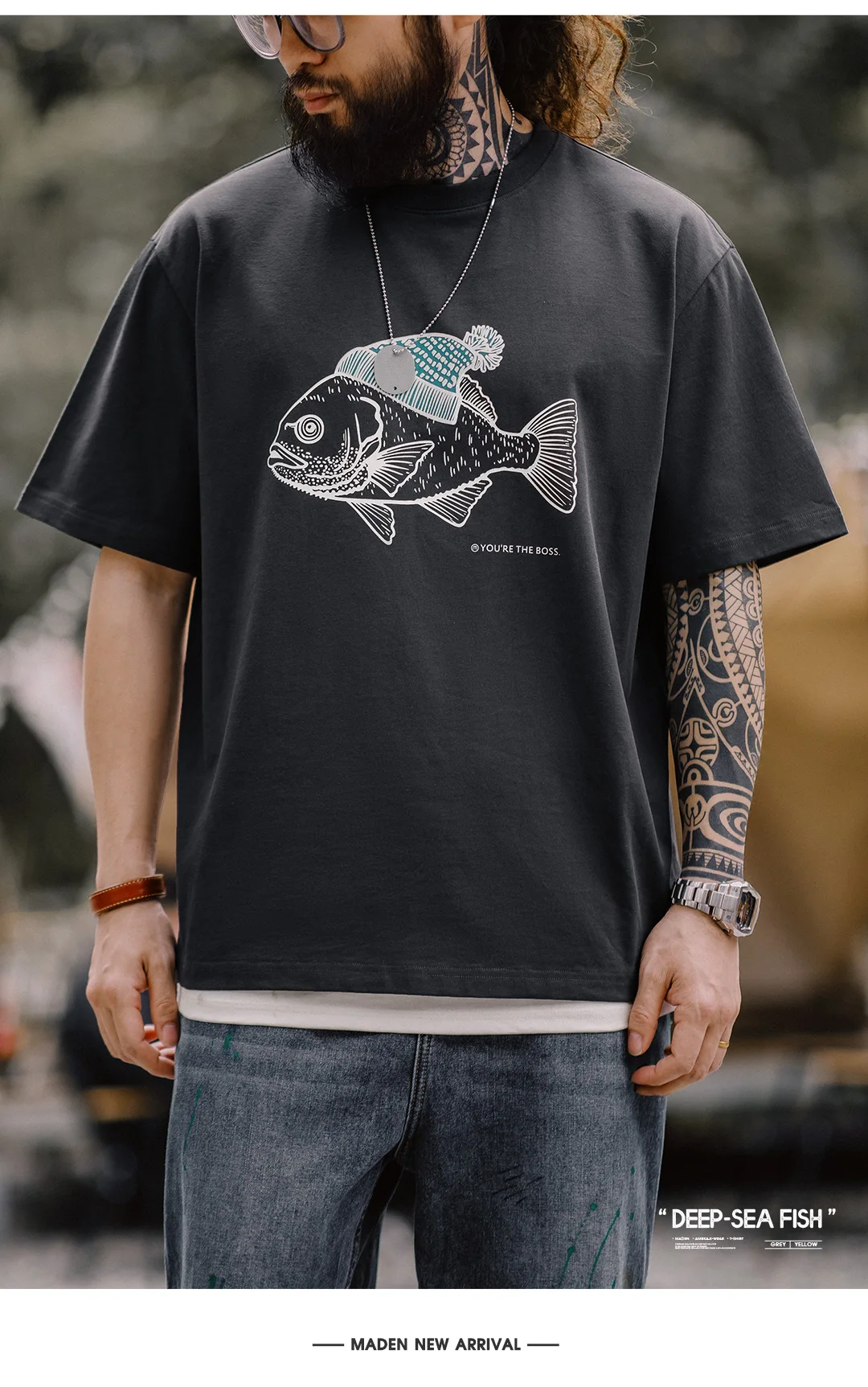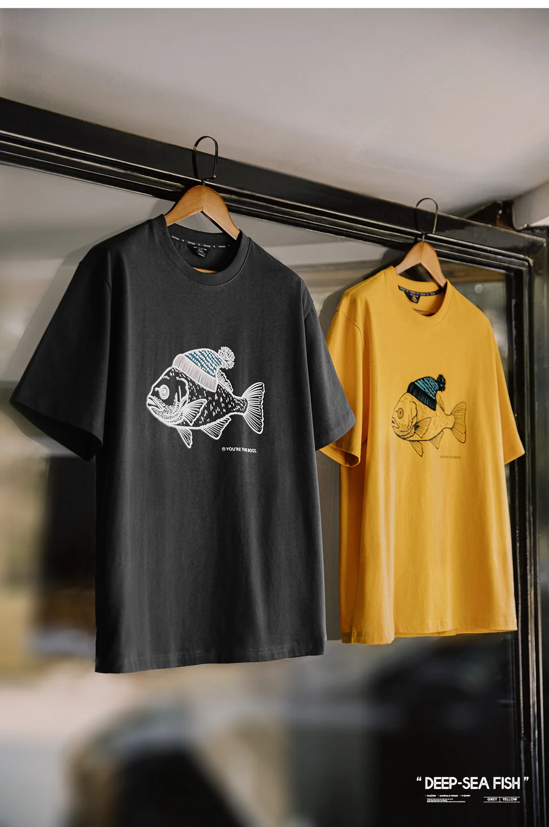 T-shirt floqué à imprimé de poissons des profondeurs pour hommes