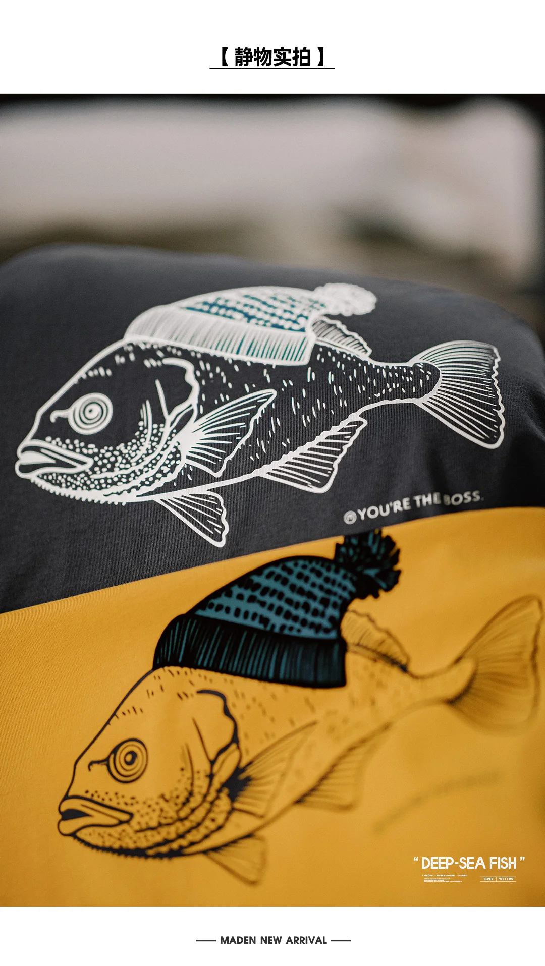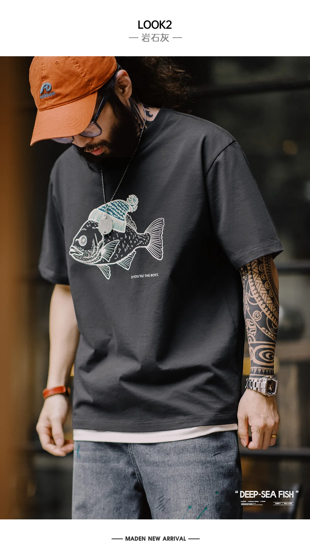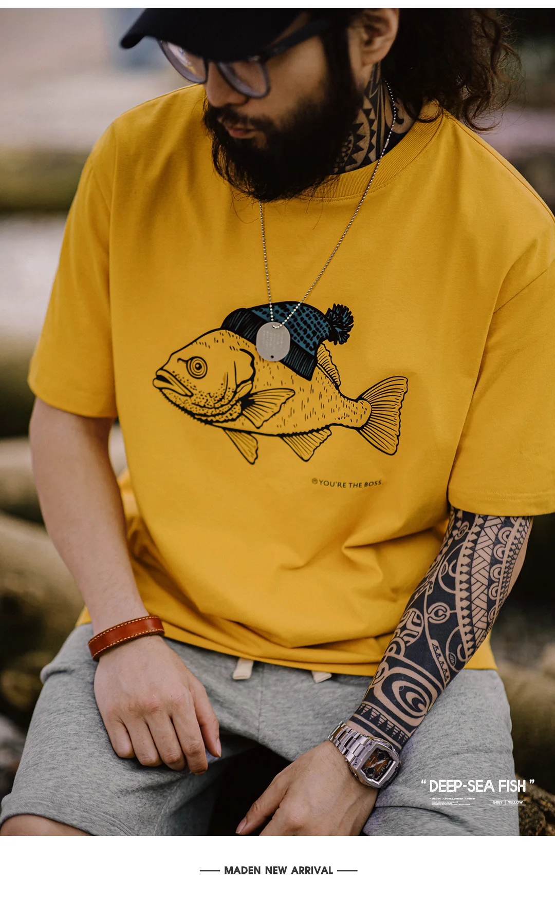 T-shirt floqué à imprimé de poissons des profondeurs pour hommes