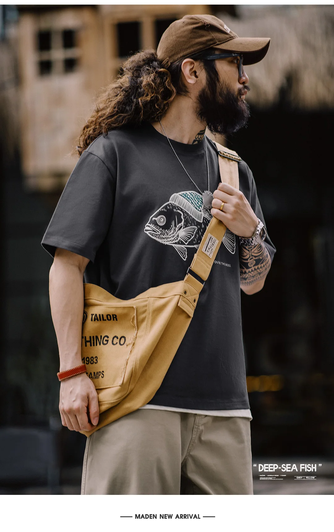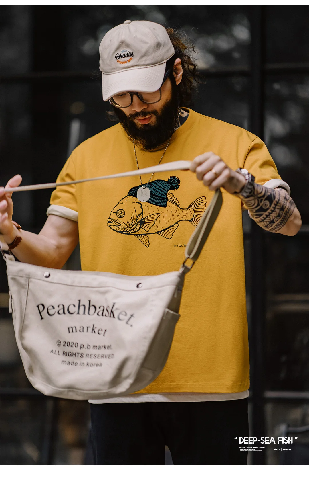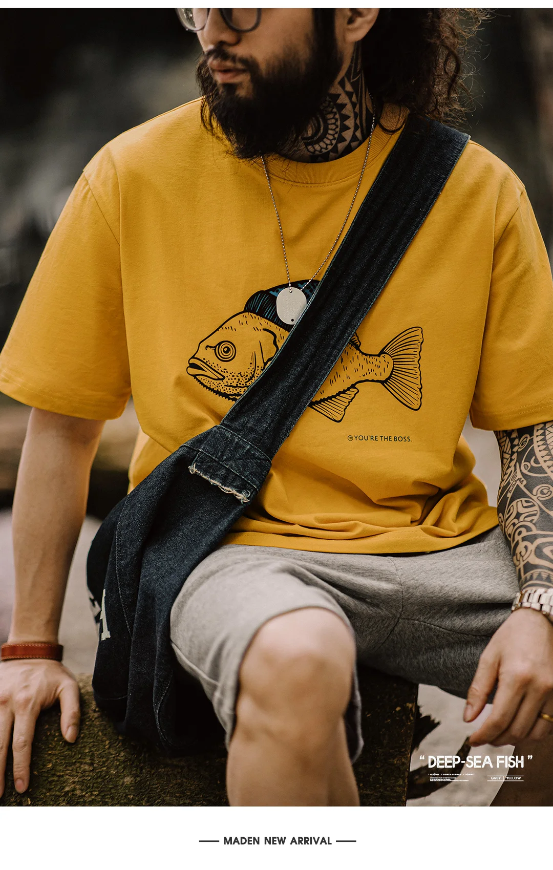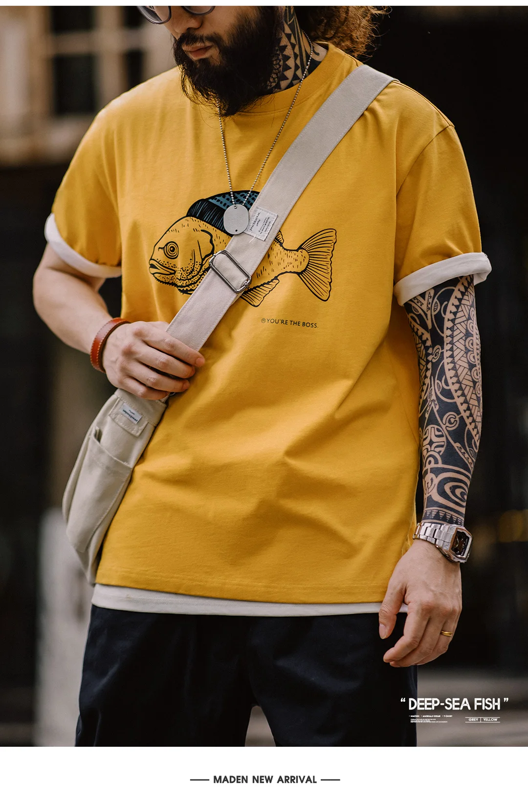 T-shirt floqué à imprimé de poissons des profondeurs pour hommes