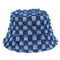 MOKATI Chapeau bob unisexe rétro à carreaux et pompon en denim